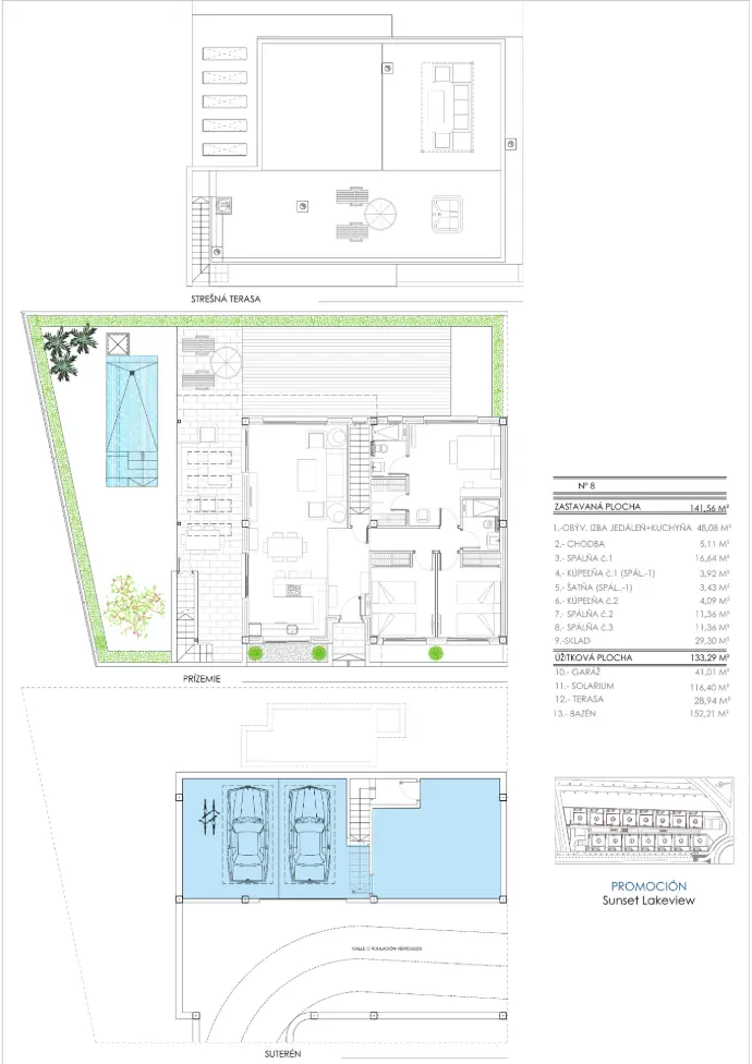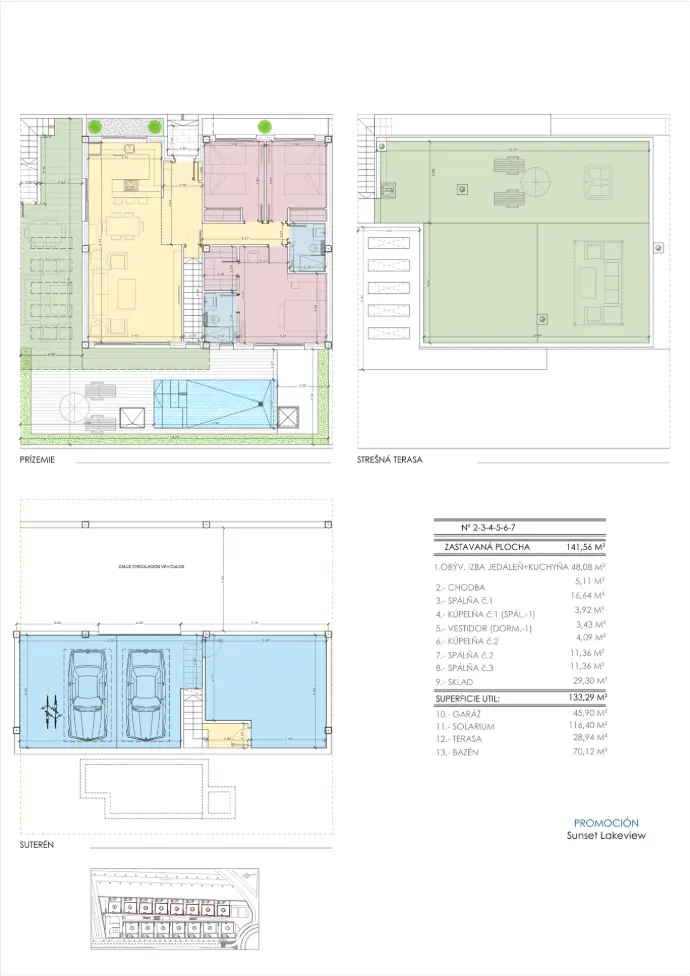 Skutočným klenotom každej vily je exkluzívna strešná terasa o ploche 116 m², ktorá vytvára dokonalé miesto na oddych pod stredomorským slnkom a umožňuje vychutnať si úchvatné výhľady na soľné jazero La Mata a okolité prírodné prostredie. Navyše je každá nehnuteľnosť doplnená priestrannou podzemnou garážou, ktorú možno využiť rôznorodými spôsobmi – či už na vytvorenie ďalšej obytnej zóny, súkromného fitness centra alebo vlastnej vínnej pivnice.